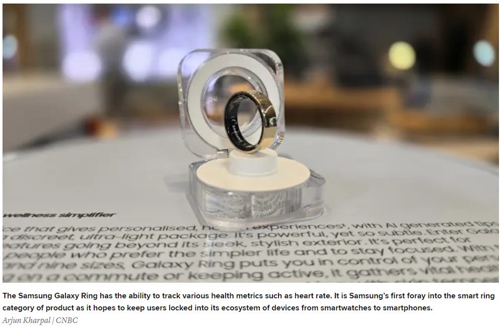 Samsung launches Galaxy Ring and seeks to integrate its products to provide health tracking features - competing with Apple.