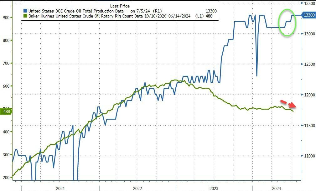 Crude oil production rises back to record high 13.3 million barrels/day.