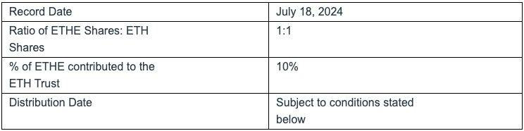 Holders of Grayscale Ethereum Trust (ETHE) shares will receive Ethereum ETF shares on a 1-1 basis.
