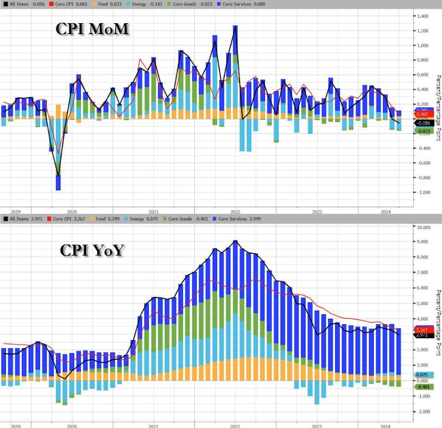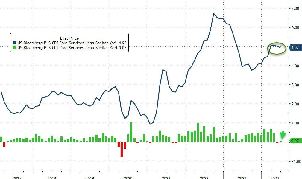 Headline and core CPI both cool more than expected - CPI Supercore growth remains anchored at high level
