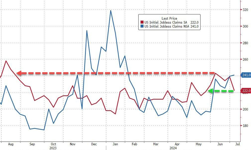 Initial jobless claims for the past week decreased to 222K (lower than estimate: 236K | previous: 239K).