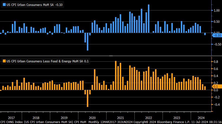 Headline CPI falls -0.1% MoM (previous 0%) - first negative growth since Covid.