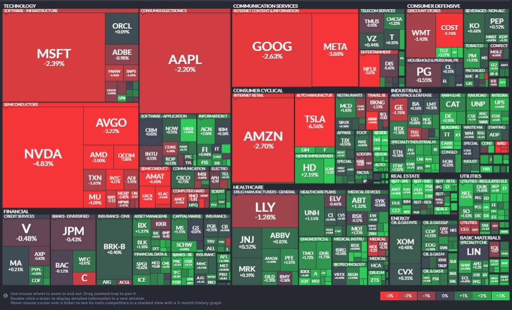 … while bigtech drops sharply as investors dare not bet on the AI wave amid declining CPI data…
