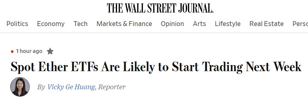 Spot Ether ETFs likely to start trading on Tuesday next week.