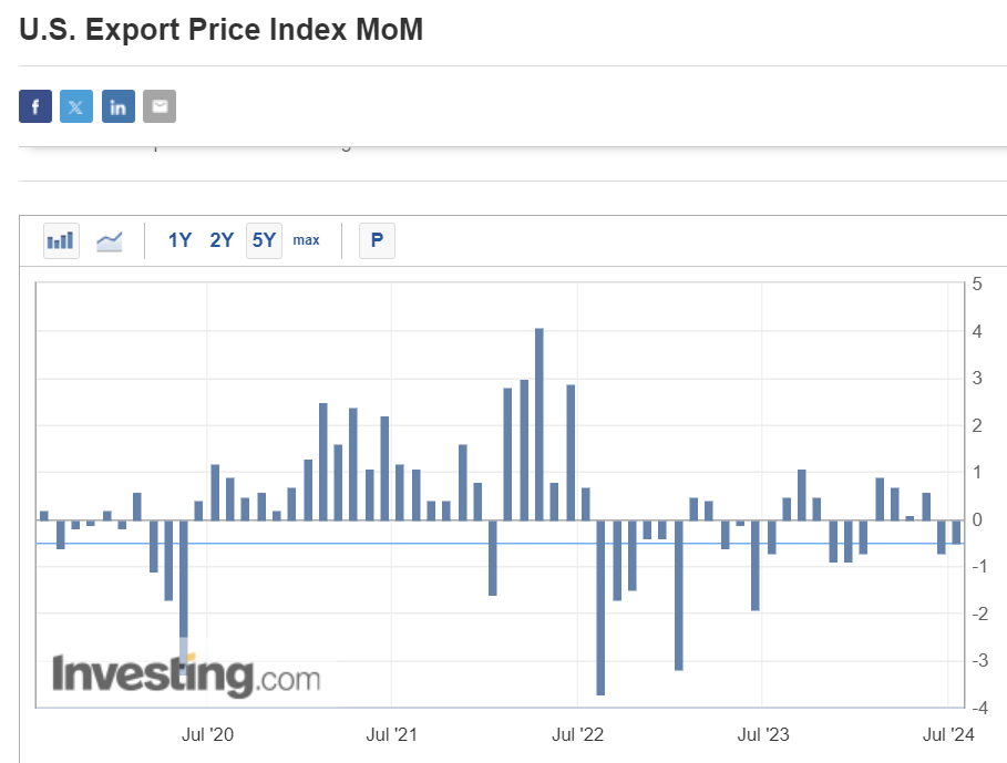 While export prices down -0.5% MoM, down more than expected -0.1%.