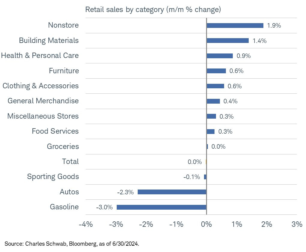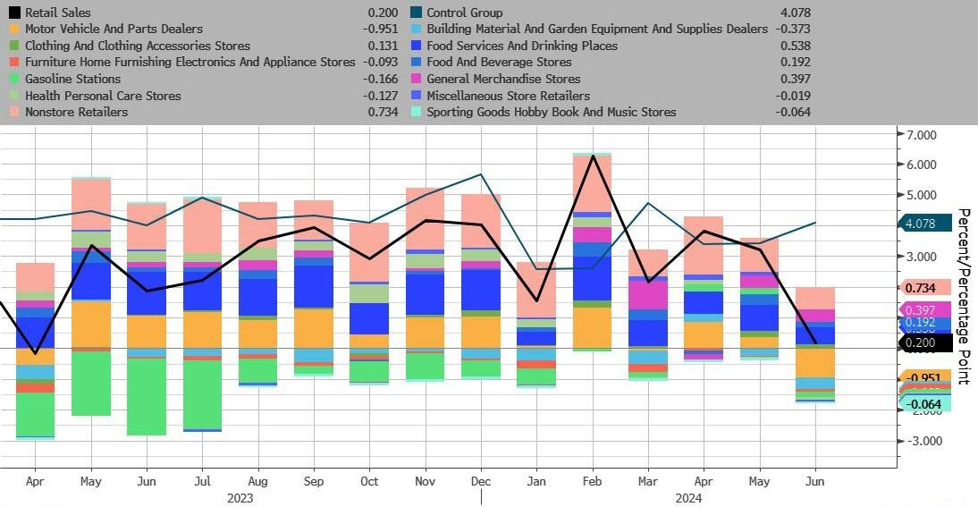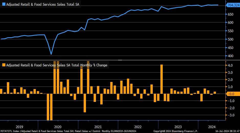June retail sales unchanged: 0% MoM (> estimate -0.3% MoM | previous +0.3%).