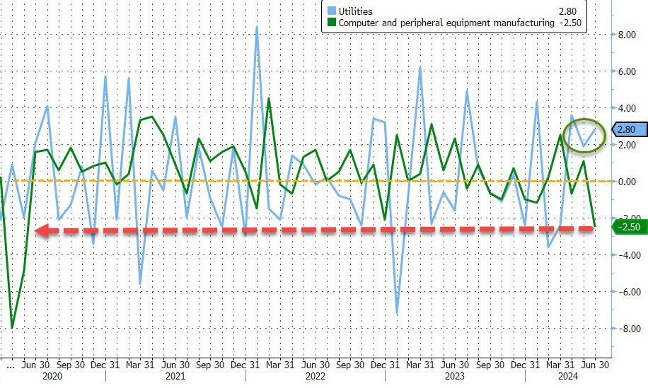 Most of this growth came from utilities sector, due to high usage demand in summer with computer and electronic products plunge -2.5% in the month