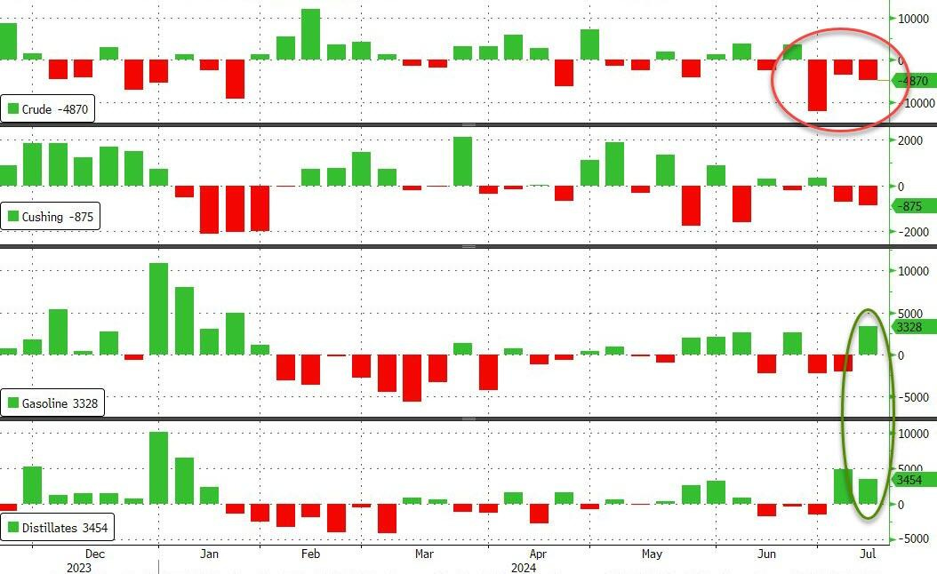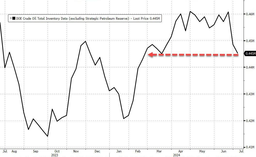 Crude inventories hit bottom, down -4.87 million barrels last week, much larger than -275,000 expected
