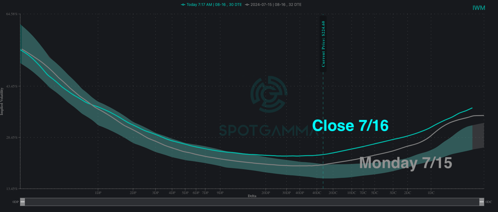 IWM also pulls back today, with calls skewed too much, IWM call options are simply too expensive compared to the market so this pullback is understandable. This pullback may continue for another day.