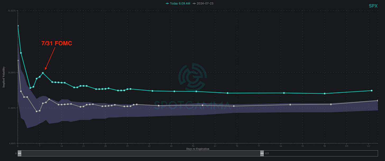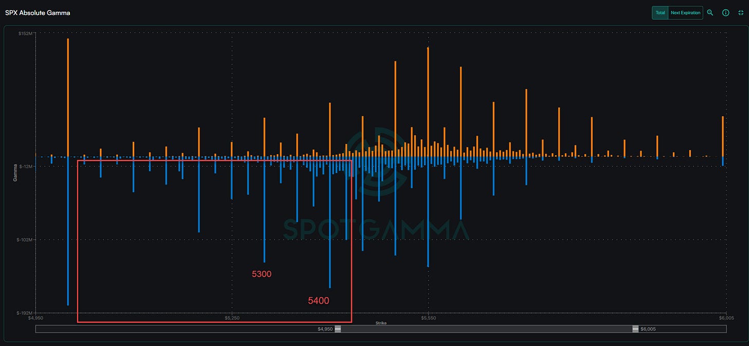For now, SPX must hold level 5400 tomorrow to continue reducing expectations of volatility range, pull VIX down, and stabilize market flows. Current volatility is overextended compared to the past year but most hedging demand is short-term. A decline in volatility will certainly create shorts-cover rallies like today.