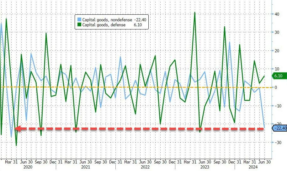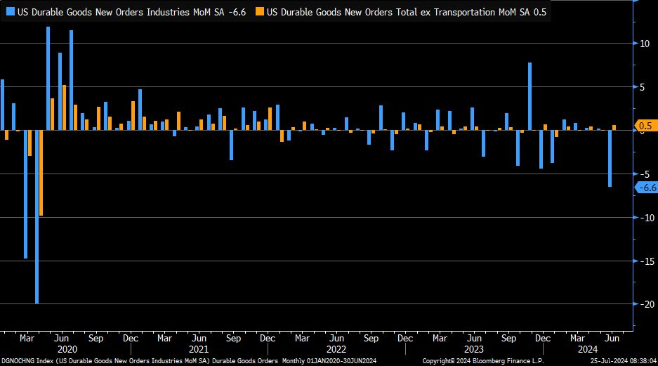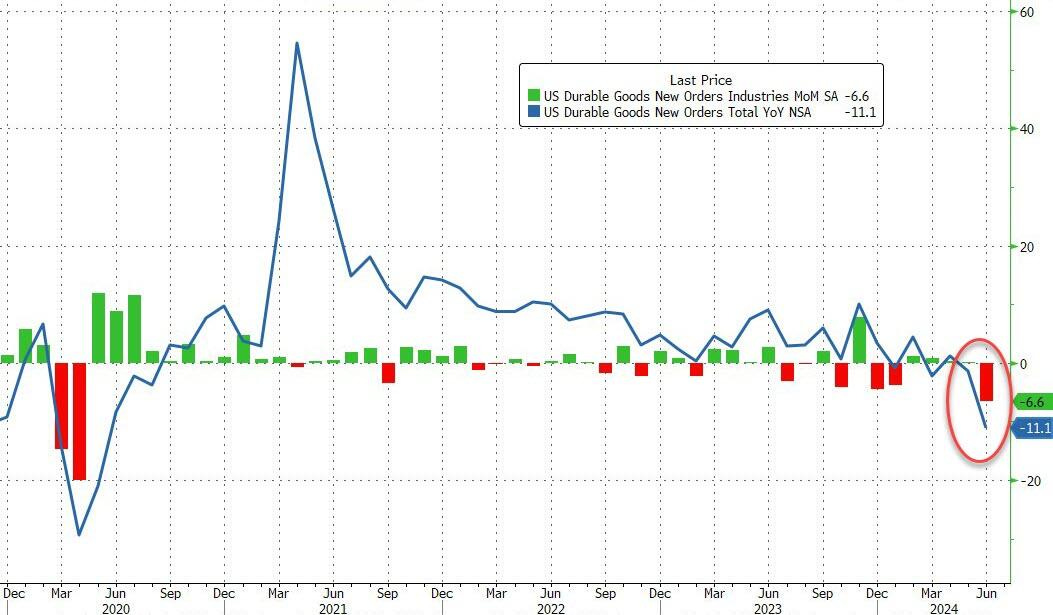 Durable goods orders index unexpectedly plunges -6.6% MoM vs +0.3% expected and +0.1% previous month