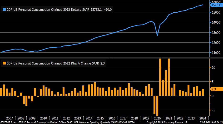 Prices in the GDP product basket only up 2.3% QoQ, lower than 2.6% expected and down significantly from 3.1% in Q1