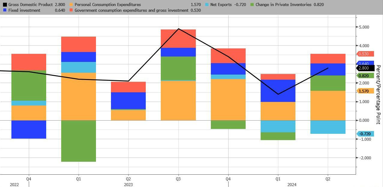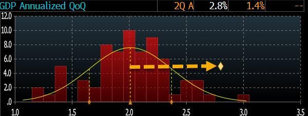 Q2 GDP growth hits 2.8% QoQ, double the 1.4% of Q1 and higher than the 2.0% forecast