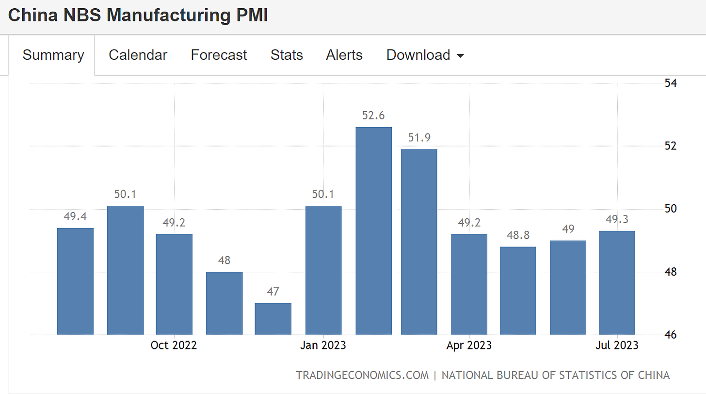 Manufacturing PMI index also slightly up in July to 49.3, higher than expected 48.9.