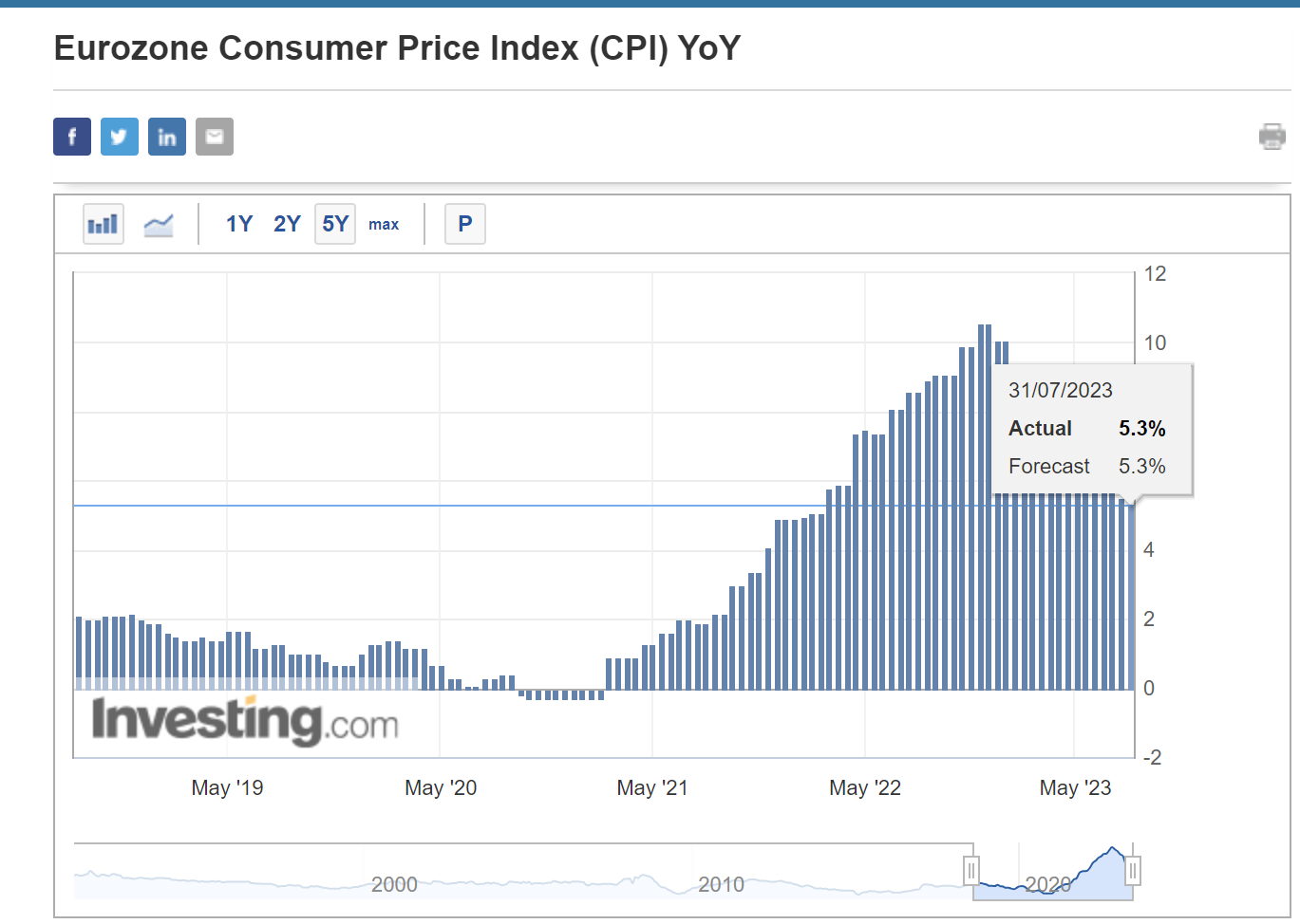 Year-over-year, EU CPI hits 5.3%, matching the forecast.