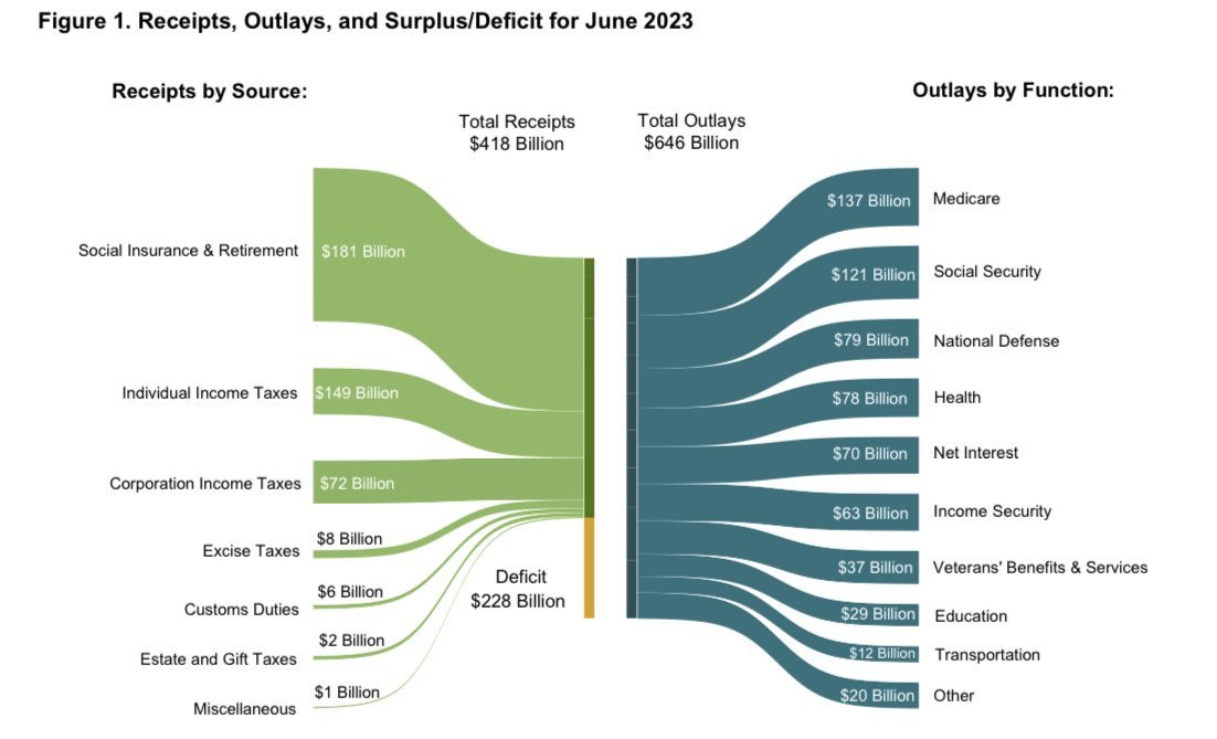Just in June alone, the government spent over 70 billion USD on interest costs, expected to soon exceed the defense budget.