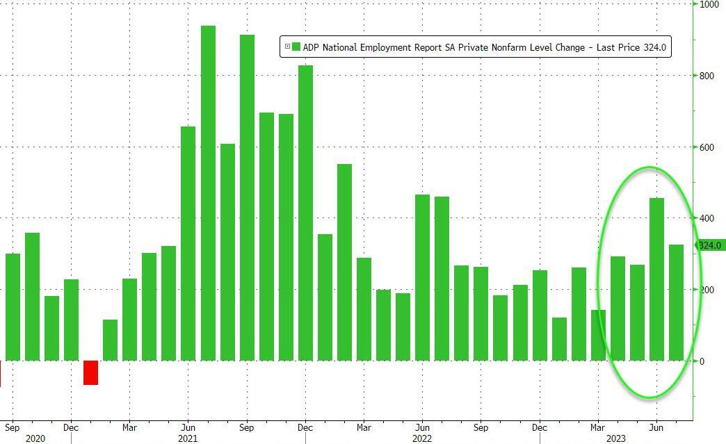US ISM/PMI manufacturing index weakens, causing ADP jobs report expected to slow sharply in July, however in reality this figure recorded an increase of over 324,000 jobs.