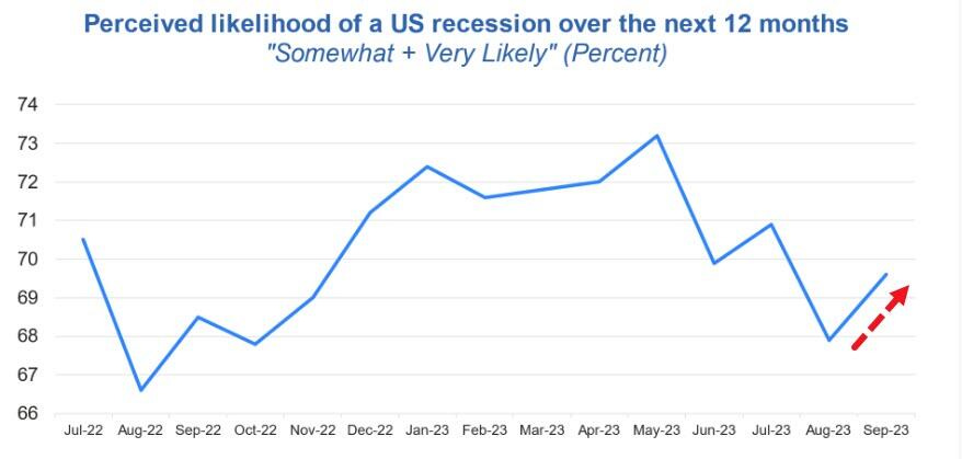 The percentage of consumers who believe a recession is likely increased in September after decreasing in August.
