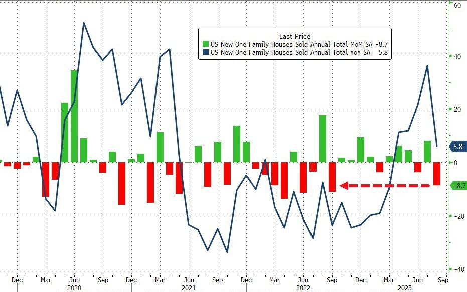 New home sales in August fell 8.7% from the previous month - the largest drop since September 2022