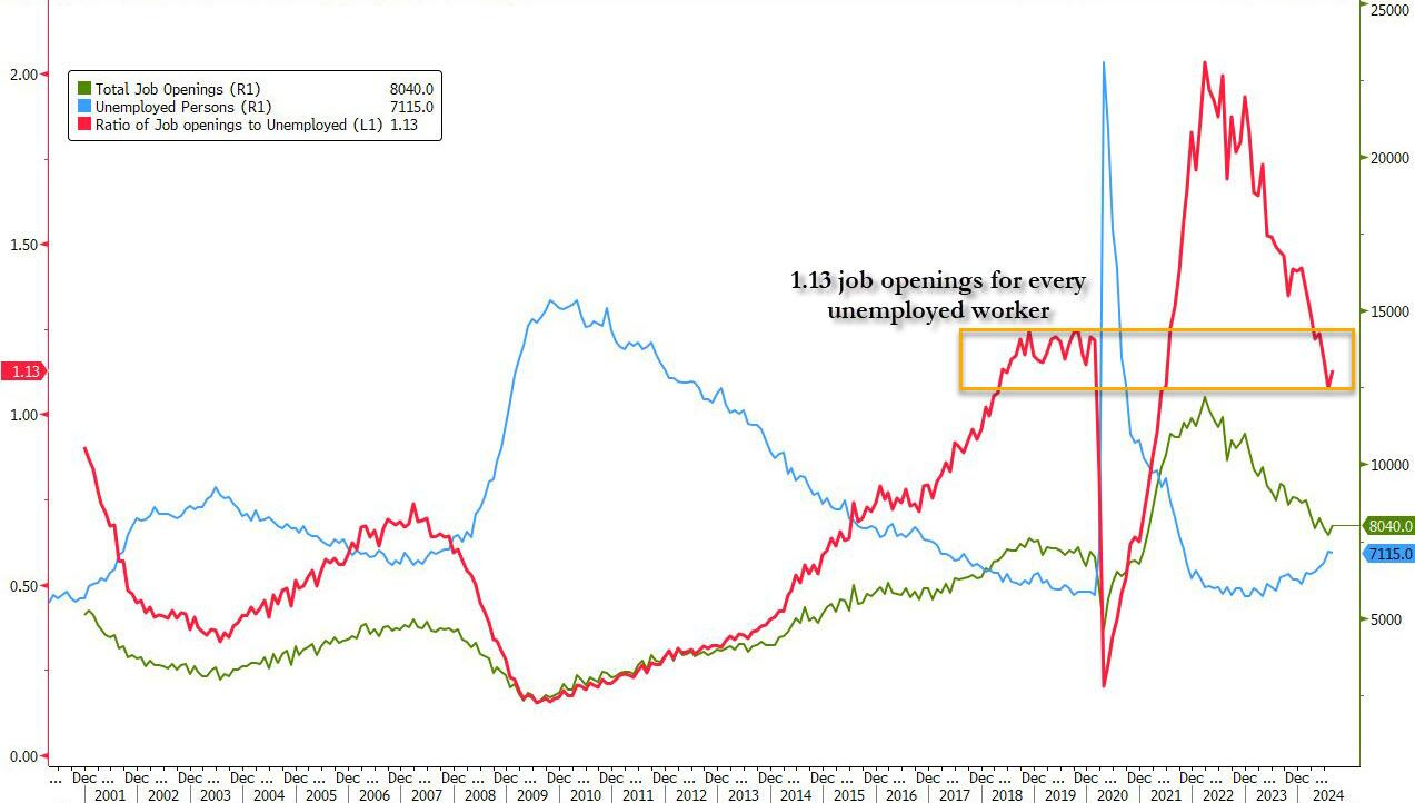 Unemployment/job vacancies ratio at 1.07, lowest since 05/2021 and below pre-COVID