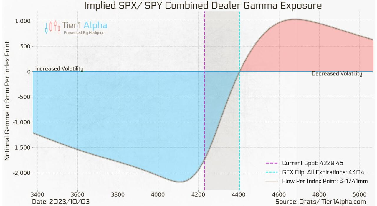 "Overall, the market is set up for a short-cover rally up to SPX~4300 from a positioning perspective with a huge amount of short-term puts at SPX~4200. Currently, VIX is being pinned below call wall 20, reducing the impact of the puts above somewhat and creating fuel for the market rally as the puts start to decay at SPX~4200 or buyers accept rolling off hedges to next week."