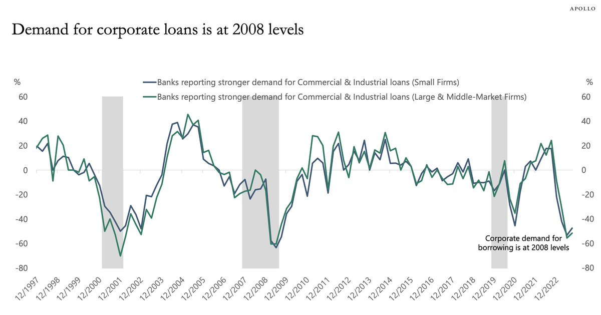 However, it cannot be denied that high interest rates are accelerating corporate bankruptcies. Corporate borrowing demand has dropped to levels seen during the 2008 recession, even 20% lower than during Covid, indicating corporate caution amid economic uncertainty.