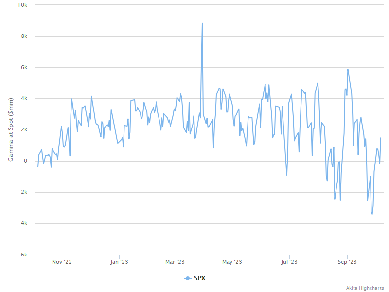 "Most of the hedge flow has been moved to the 11/17 expiration to cover FOMC, creating a gap for the market to continue short-term recovery early next week as pressure from gamma dealers eases, keeping volatility low. However, note the wildcard of bond yields with 10Y 5.00% level being assessed as the market's next panic level."