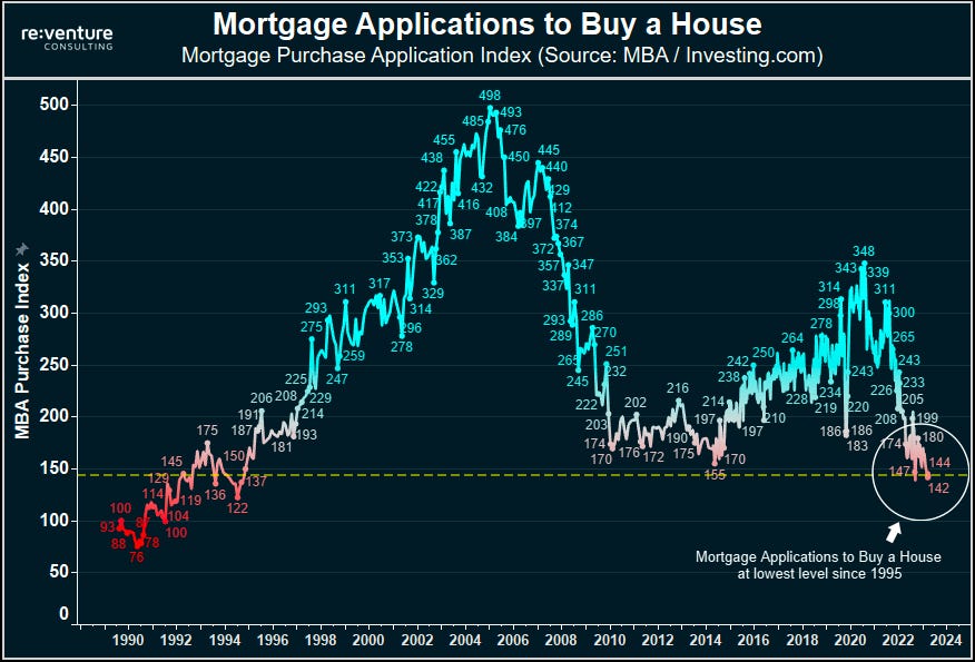 Meanwhile, demand for home purchase mortgages has hit the lowest level since 1995. The sharp drop in demand but rising rates is due to supply shortage.