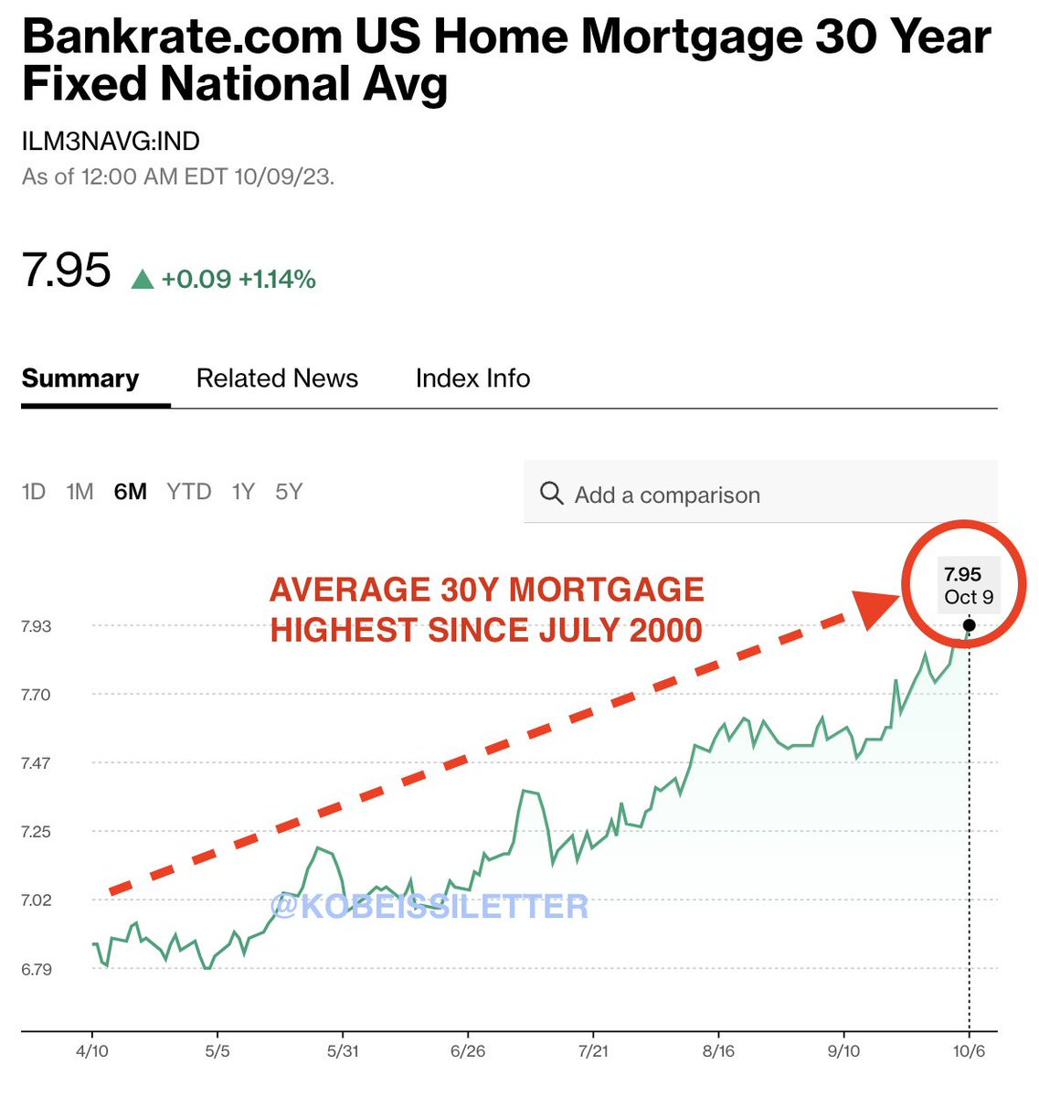 30-year mortgage rate rises to 7.95%, highest since July 2000.