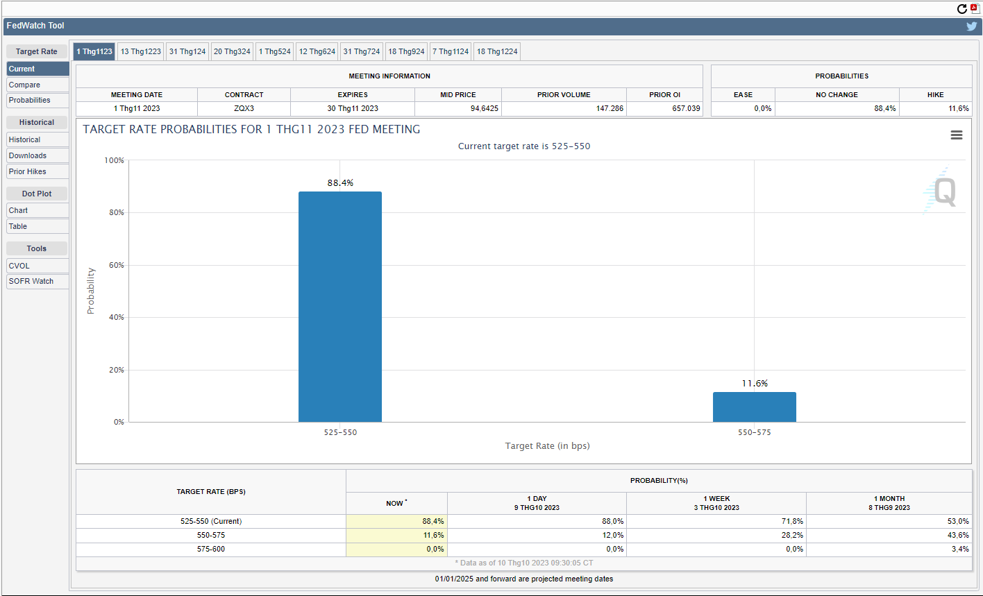 Market pricing 88.4% chance Fed will keep rates steady at November meeting.