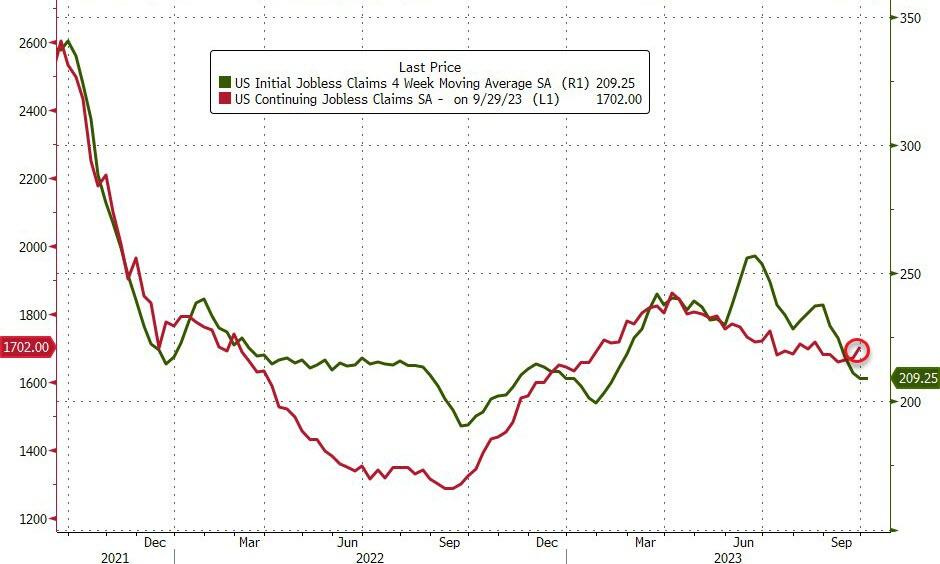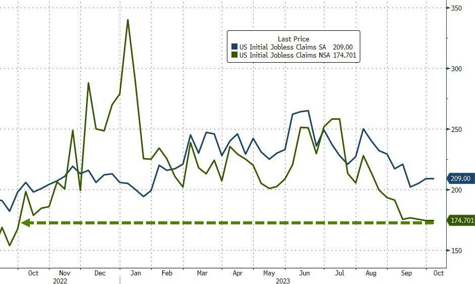 Last week's initial jobless claims remain low at 209,000. Unadjusted data at 175,000 - lowest since October 2022.