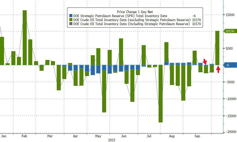EIA official weekly crude inventory data up 10.176 million barrels vs +492,000 expected - largest increase since 02/23.
