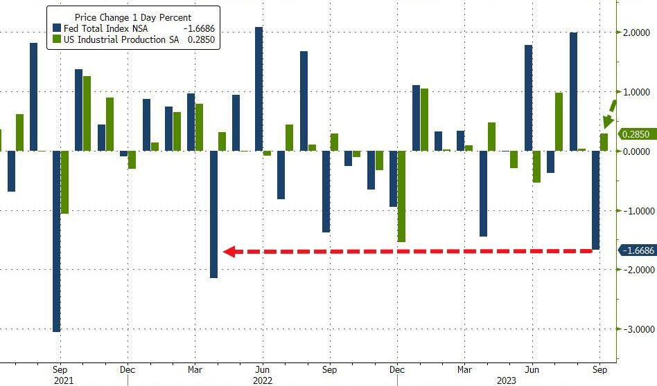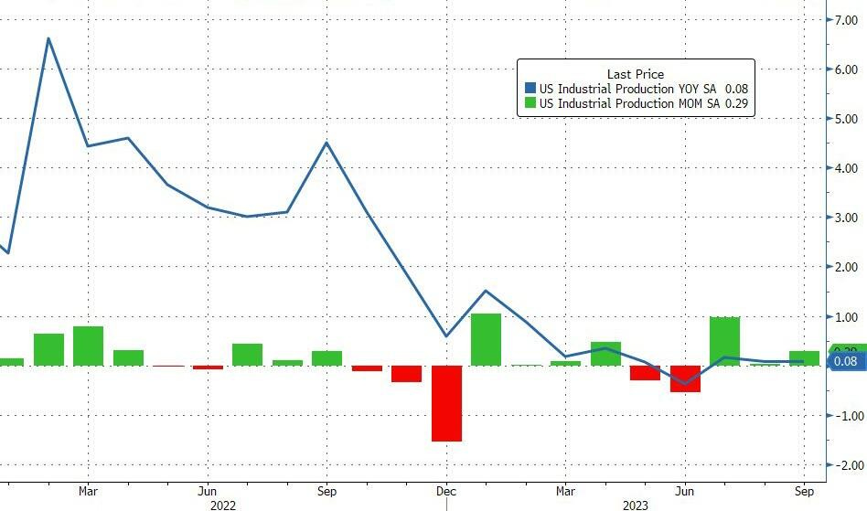 Industrial production up 0.3% from prior month, seasonally unadjusted down 1.7% from August.