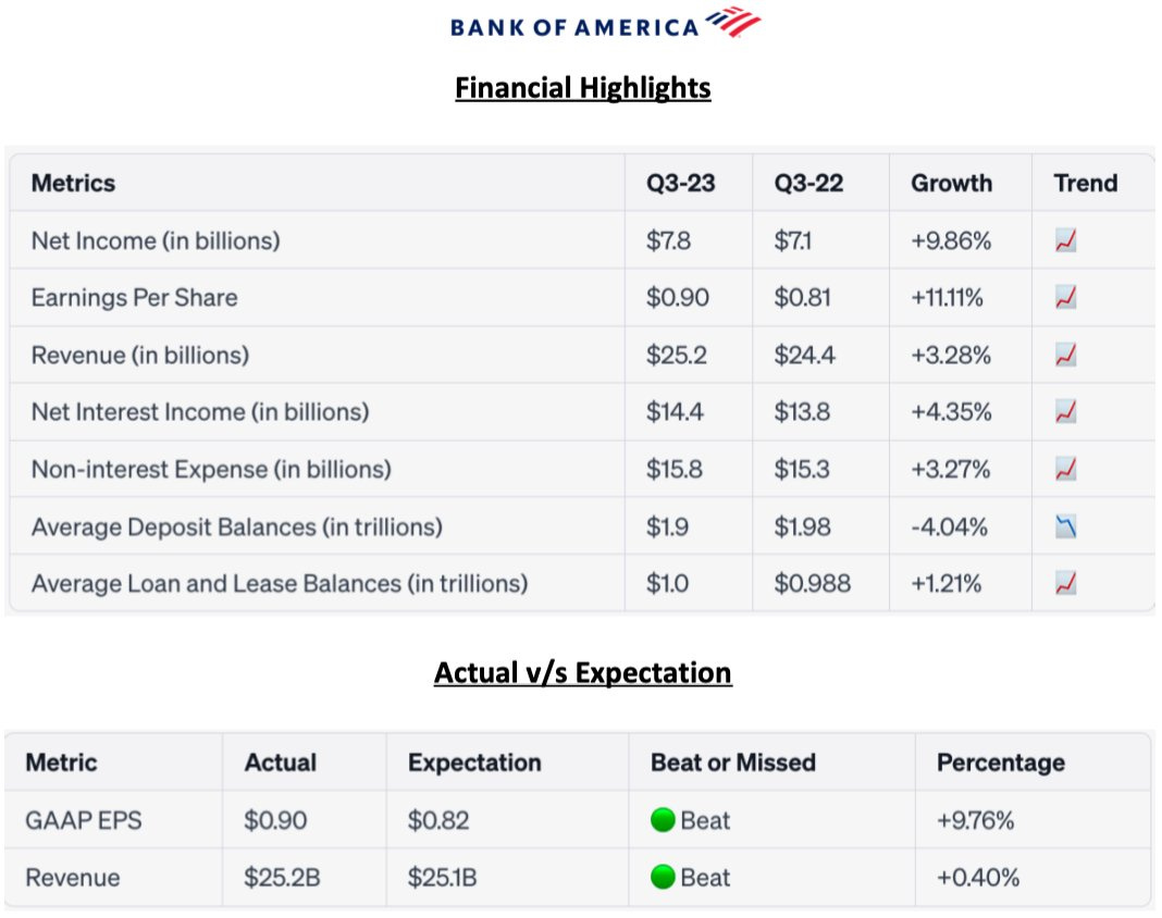 Net interest income rose 4% to $14.4 billion, about $300 million higher than analysts' estimates, due to higher interest rates and loan growth.