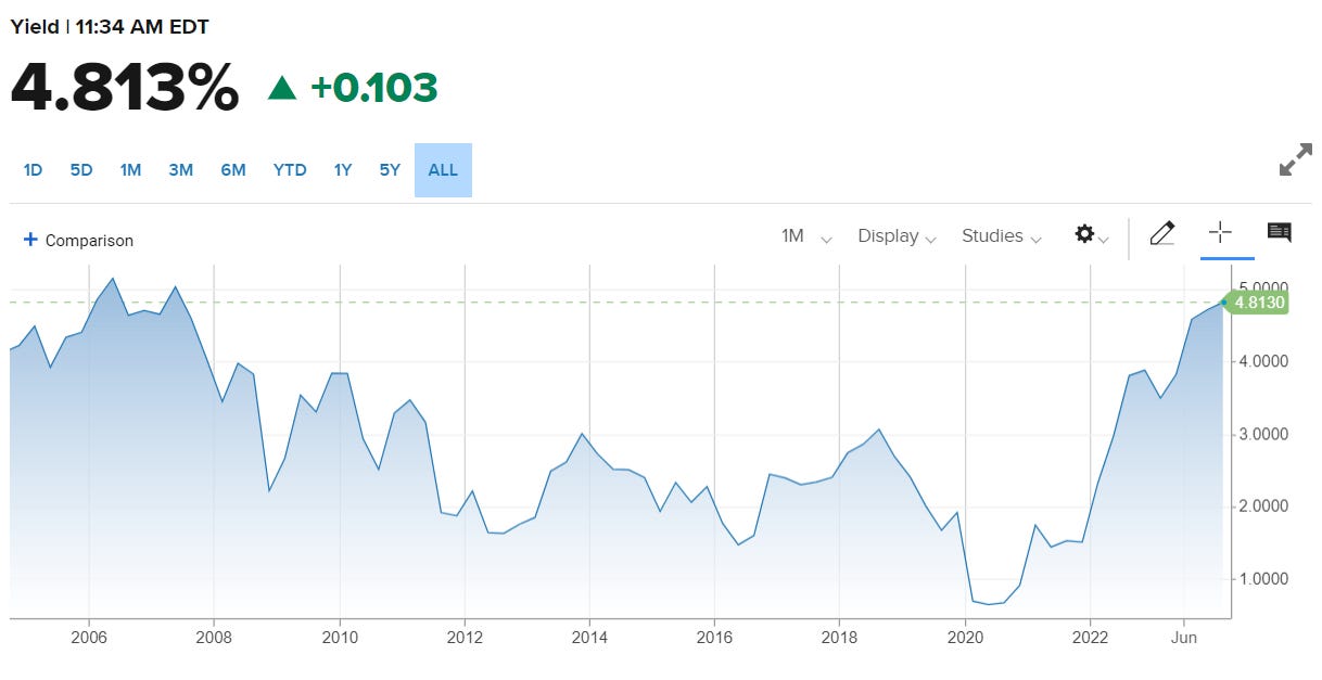 10-year Treasury yield returns to 4.81% peak, reversing all declines after Hamas attack news
