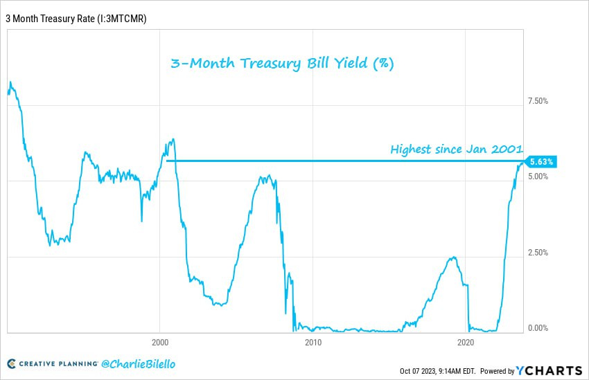 3-month Treasury bill yield hits 5.63% - highest since January 2001.