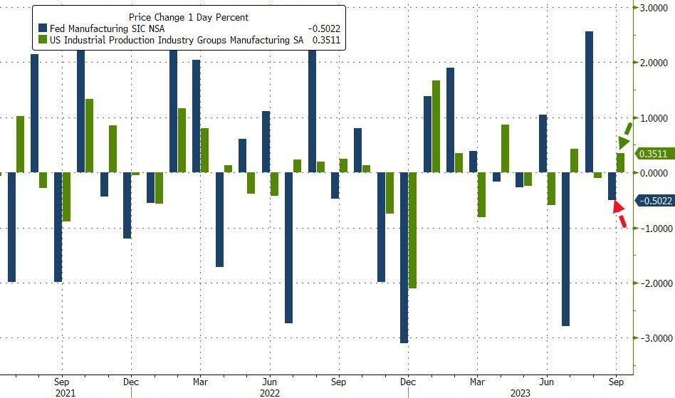 Manufacturing output up 0.35% from prior month, seasonally unadjusted down 0.5% from August.