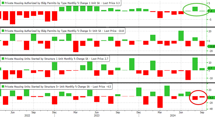 Multi-family permits down -10.8% while Single-Family +2.7%