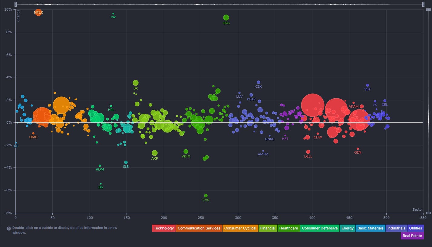 US stock market had little movement in Friday's session. Netflix pulled the tech sector while slightly lower bond yields helped push small caps.