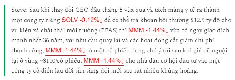 Steve: “Since the spin-off then is Steve's all-time favorite turnaround stock, Steve exited at 170 and thinks around 160 at the bottom of the old consolidation range is reasonable to re-enter.”