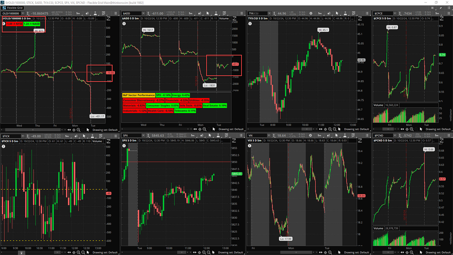 Internals today are generally weak, market sideways and balanced, most likely this environment will persist until the end of the session with SPX closing around 5850.