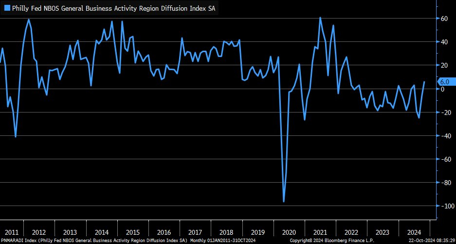 Philly FED reports services up +6 vs +4.1 forecast from -6.1 last month