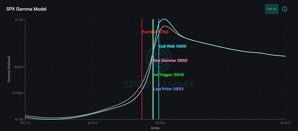 Regarding structure, almost no change from yesterday, SPX above 5800 bullish up to 5900 but overall all levels are very close together.