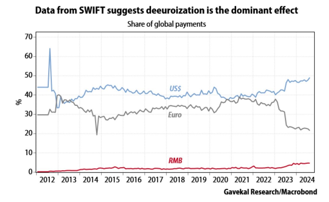 → Fear of abandoning the dollar only seen in news but in reality, the only decline comes from the Euro.