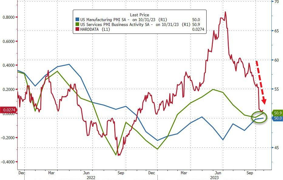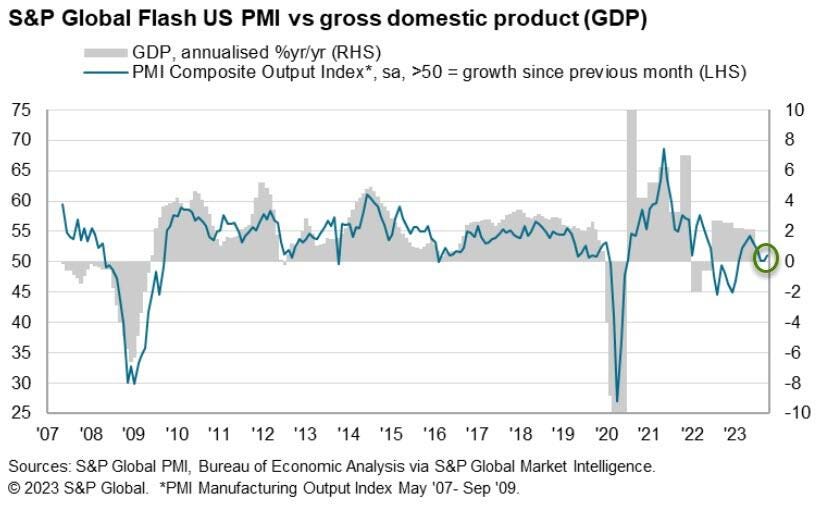 Despite the sharp decline in data in recent weeks, S&P Global's October preliminary PMI shows improvement in manufacturing and services sectors (both predicted to decline).