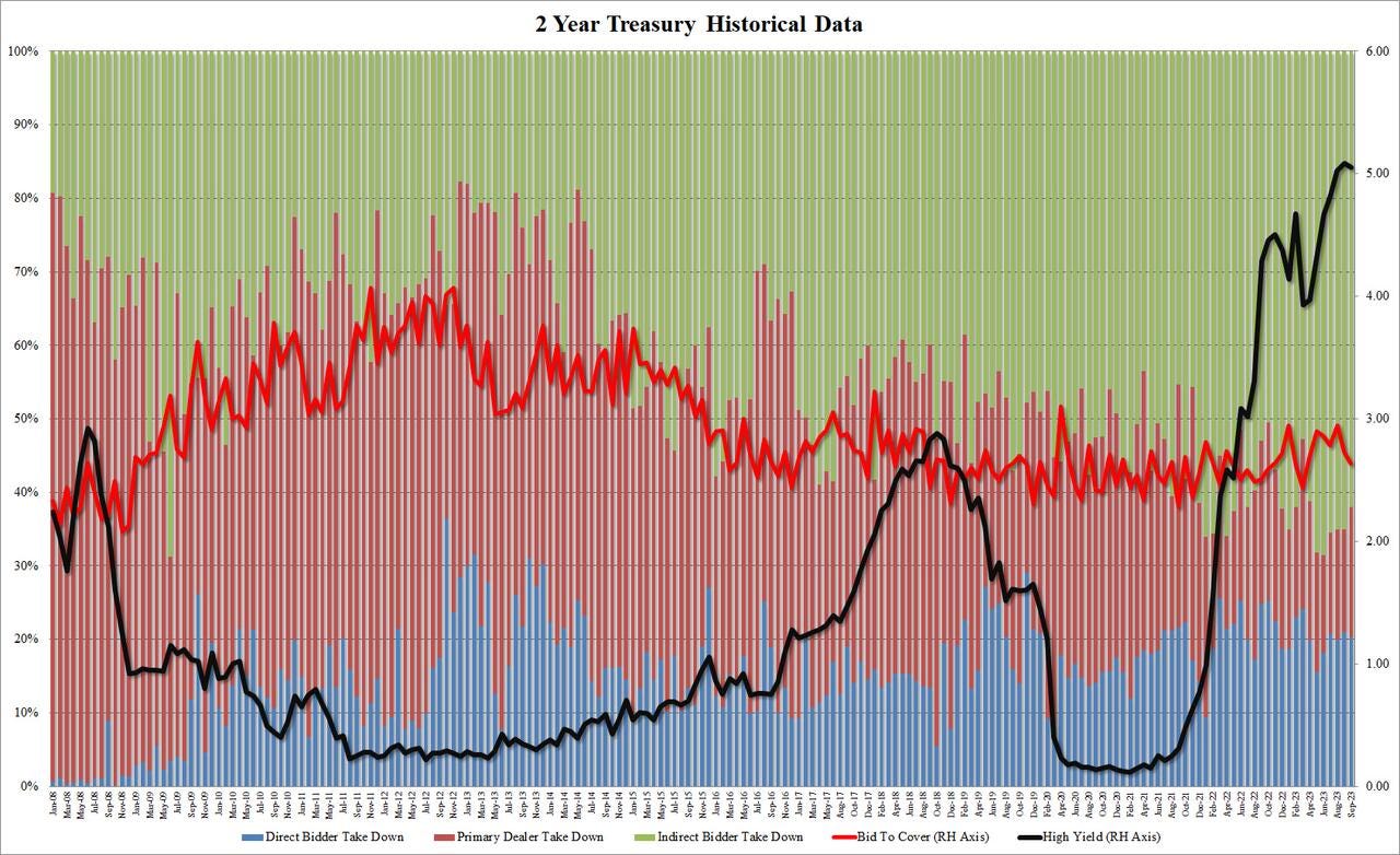 Today's noon $51B 2Y bond auction proceeded as expected with yield at 5.055% matching market levels. This is the 2nd 2Y auction without major volatility. This is also the first decline in 7 months.