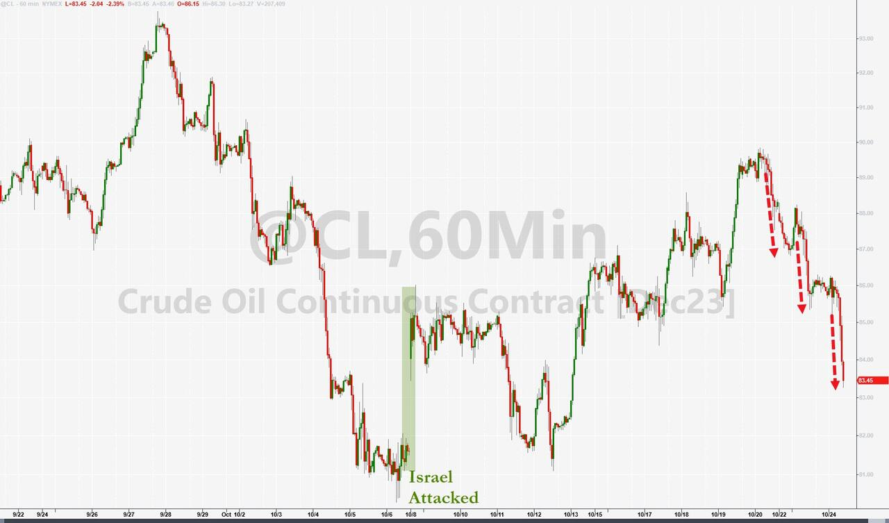 WTI crude down 2.19% on the day and currently at 83.83 USD/barrel;