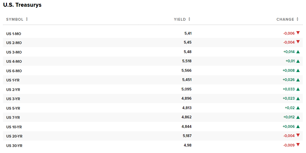 After surging above 5% in recent days, bond yields have now reversed lower. 30-year Treasury yield has fallen below 5%.