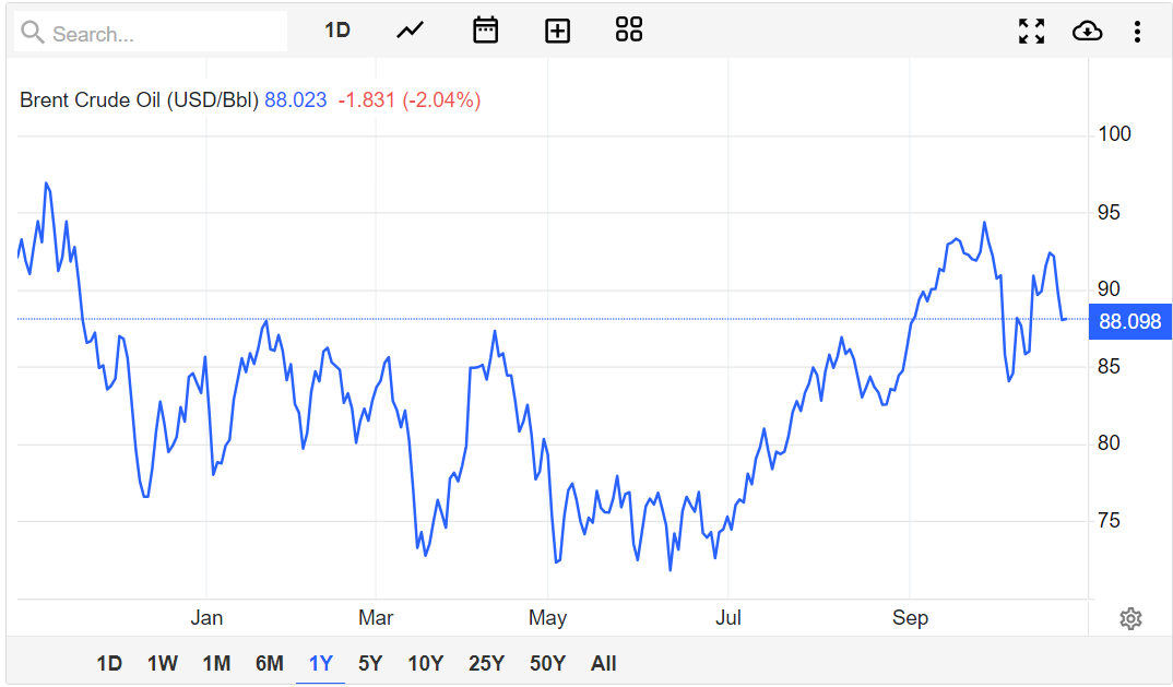 Brent crude currently down 2.04% at 88.098 USD/barrel.