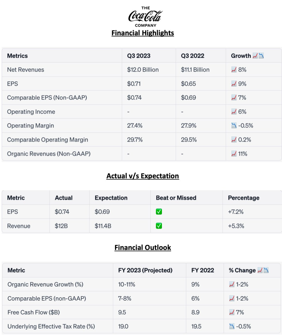 Coca-Cola reports Q3 earnings beating analyst expectations.